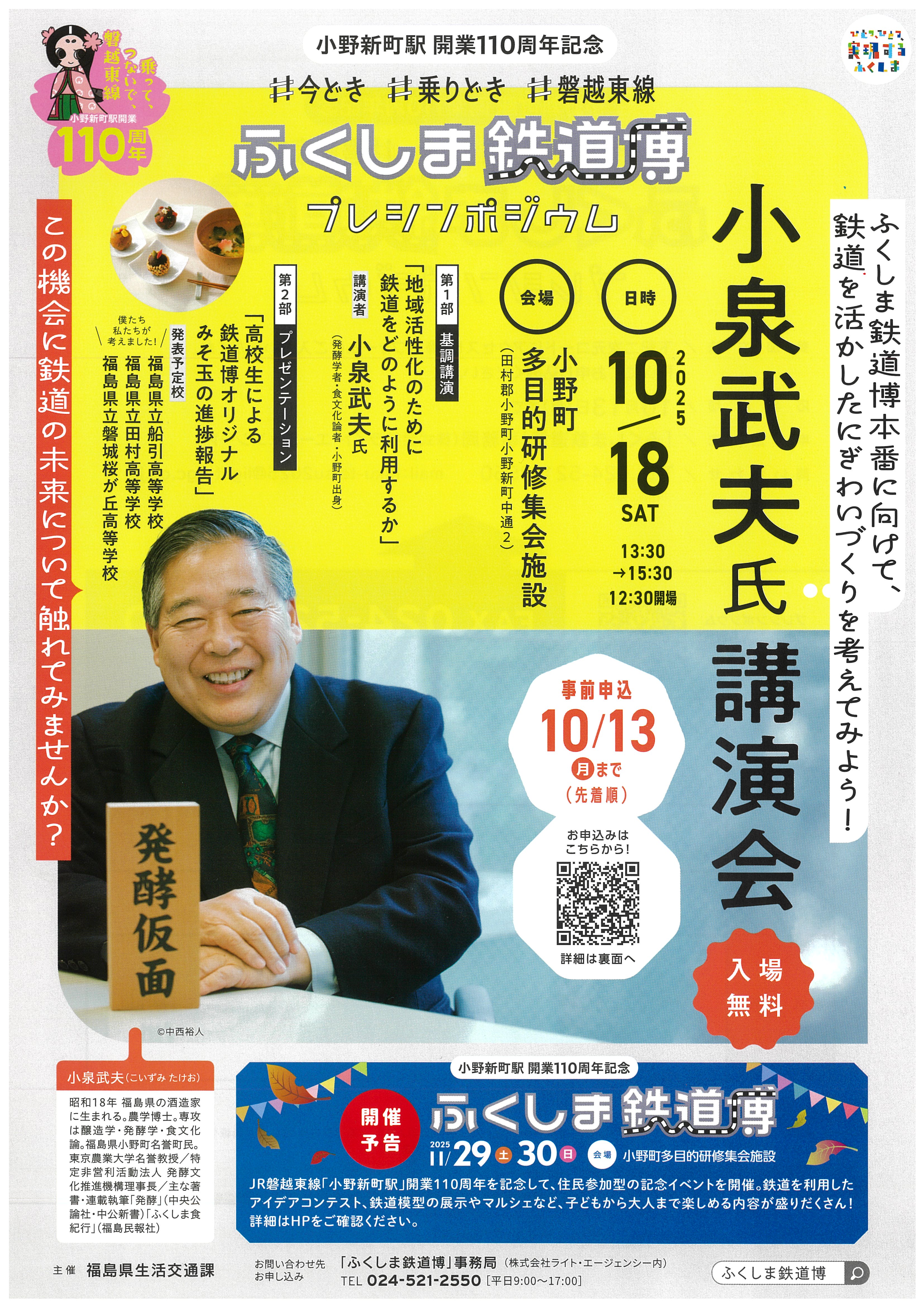 『ふくしま鉄道博』本番に向けたプレシンポジウムが、10月18日(土曜日)開催されます。